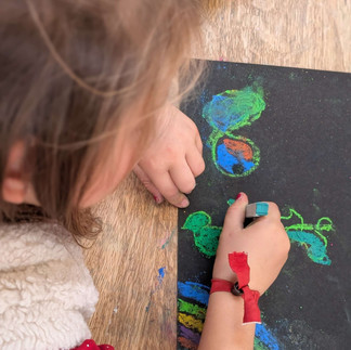 Ook op papier kwam het Monstermeer tot leven. Met krijttekeningen van vissen onderzochten de kinderen kleur, beweging en richting. Zwemmend, duikend of verstopt in het water ontstonden onderwaterwerelden vol verbeelding.
